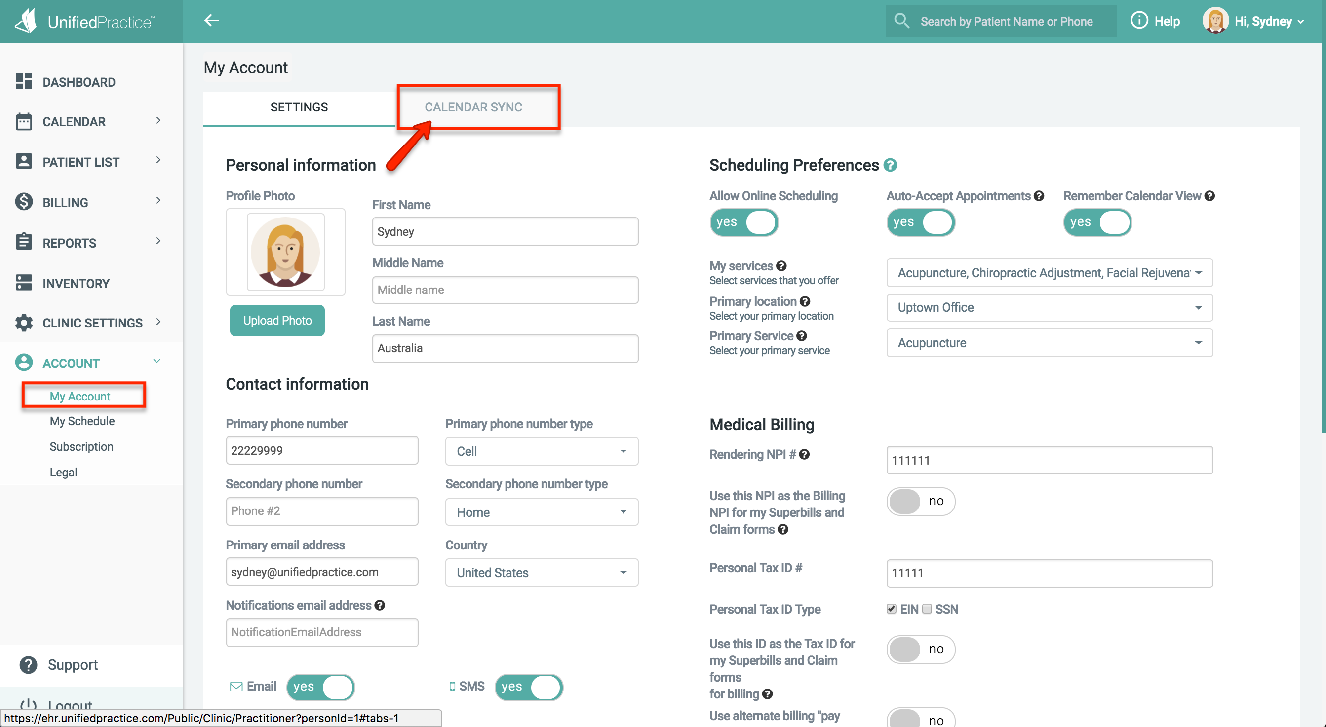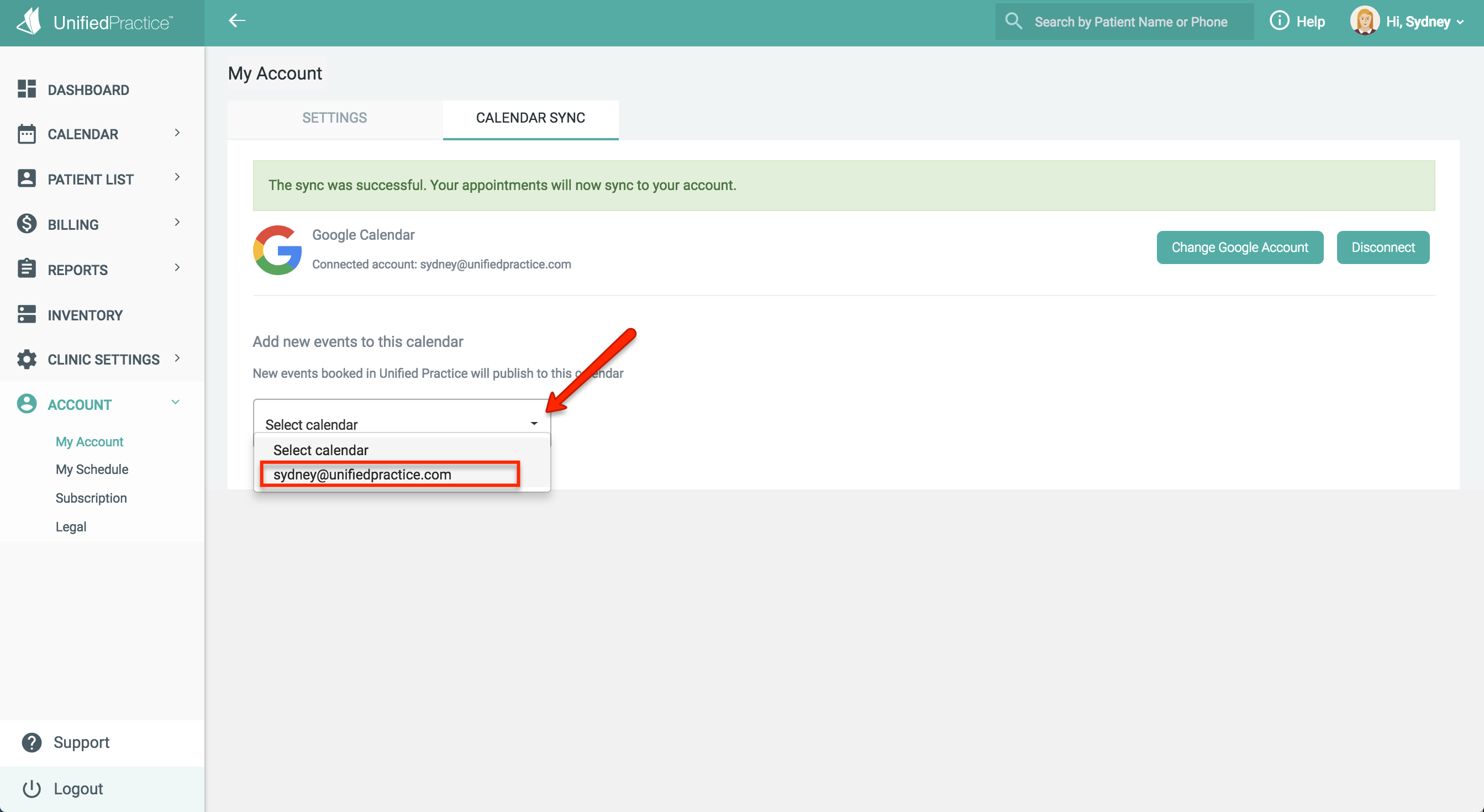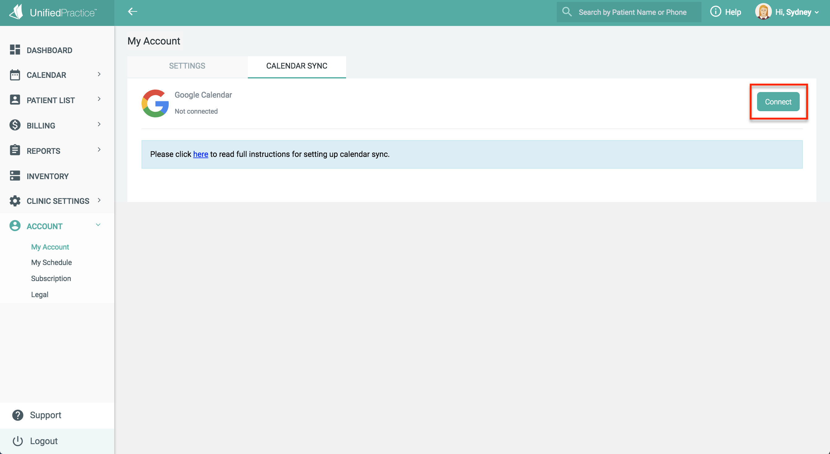 - Your Unified Practice calendar will now sync to your personal Google Calendar.