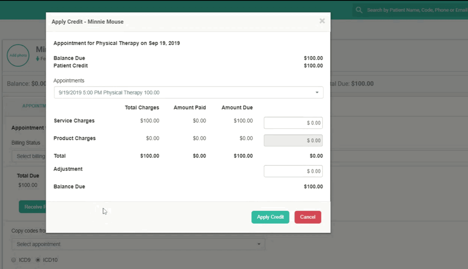 This article will show you how to apply a credit to a patient's file