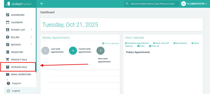 After creating packages, it's time to sell them! Proceed to Package Sale within the navigation menu: