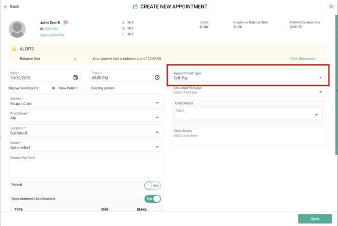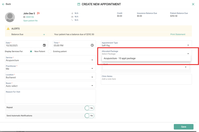 - Receive Payment - patient pays for the package immediately. Partial payments are also allowed, offering further flexibility