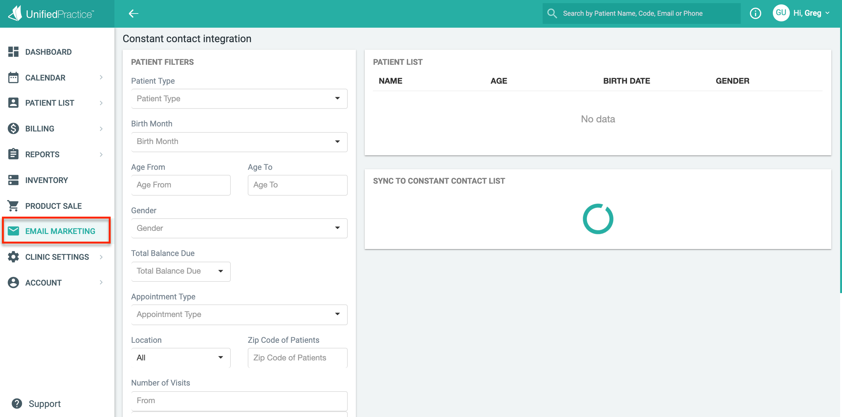Then, you can sync the list you just created to a Constant Contact List (a list already created in your Constant Contact account) OR you can create a new list for the patient's you've populated. The new list will automatically sync to your Constant Contact account.